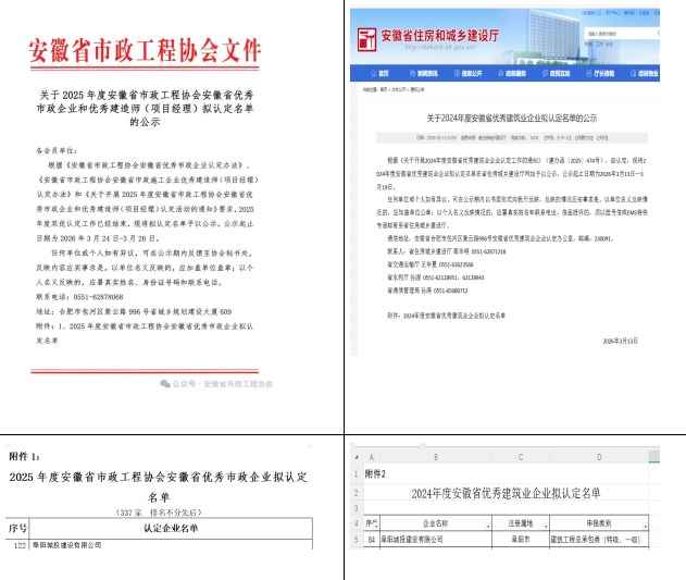 “安徽省優(yōu)秀建筑業(yè)企業(yè)”由安徽省住房和城鄉(xiāng)建設(shè)廳組織評選,“安徽省優(yōu)秀市政施工企業(yè)”由安徽省市政工程協(xié)會組織評選,旨在充分發(fā)揮優(yōu)秀企業(yè)的引領(lǐng)示范作用,表彰工程建設(shè)領(lǐng)域表現(xiàn)突出、技術(shù)創(chuàng)新能力強、社會信譽良好的企業(yè)。